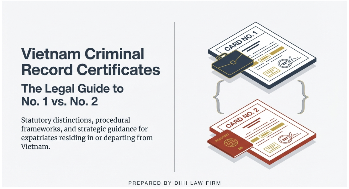 For expatriates residing in or departing from Vietnam, securing a Vietnam criminal record certificate (statutorily referred to as the Judicial Record Card is a mandatory prerequisite for various administrative procedures, including work permit applications, international adoption, or immigration filings for third countries. However, the Vietnamese legal system bifurcates these records into two distinct classifications: Card […]