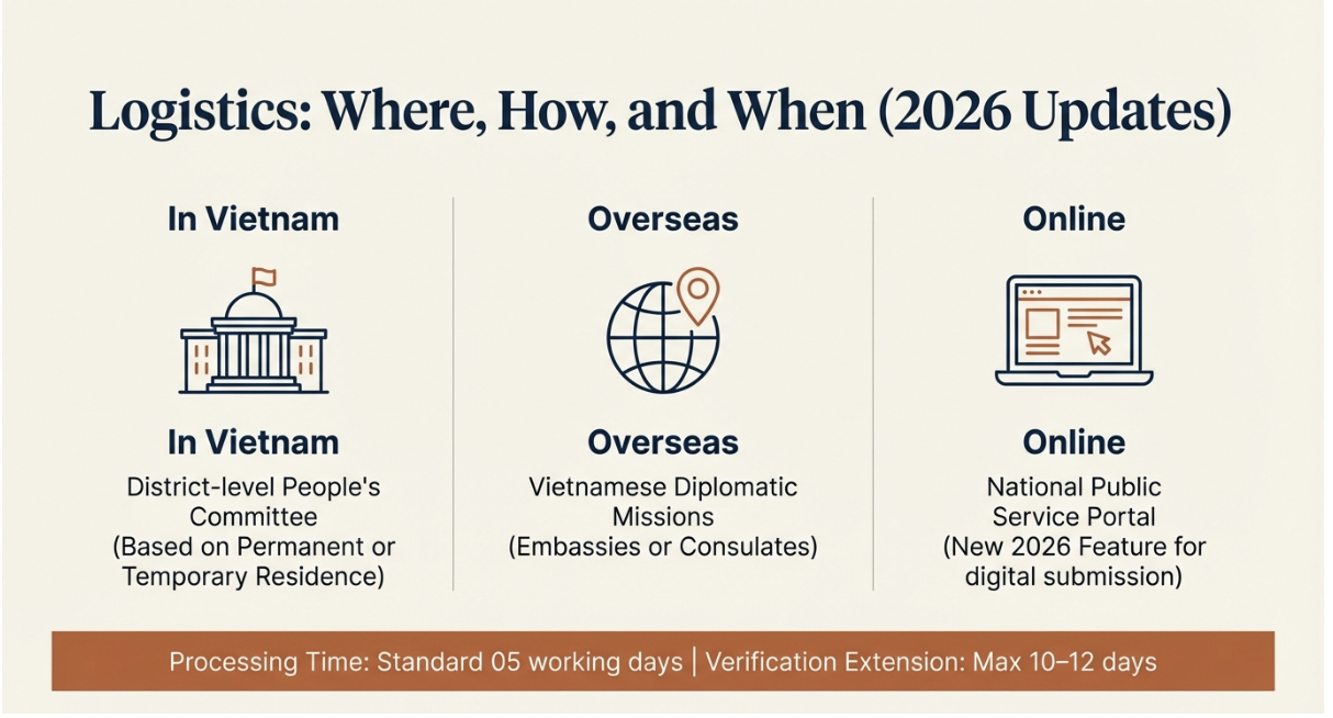 Processing Time: Judicial delegation typically takes from 03 to 06 months, or even longer depending on whether Vietnam and the host country have signed a Mutual Legal Assistance Agreement.