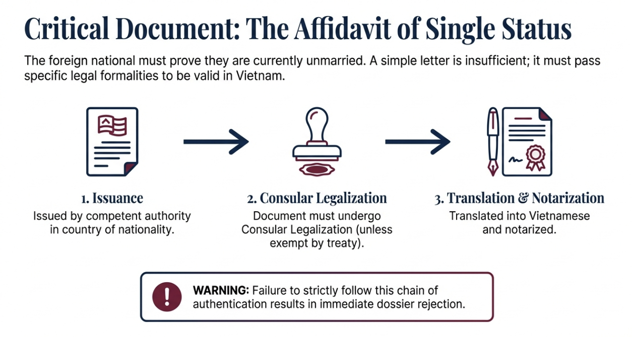 This guide outlines the statutory requirements, the critical affidavit of single status, and the verification process for marriage registration in Vietnam.
