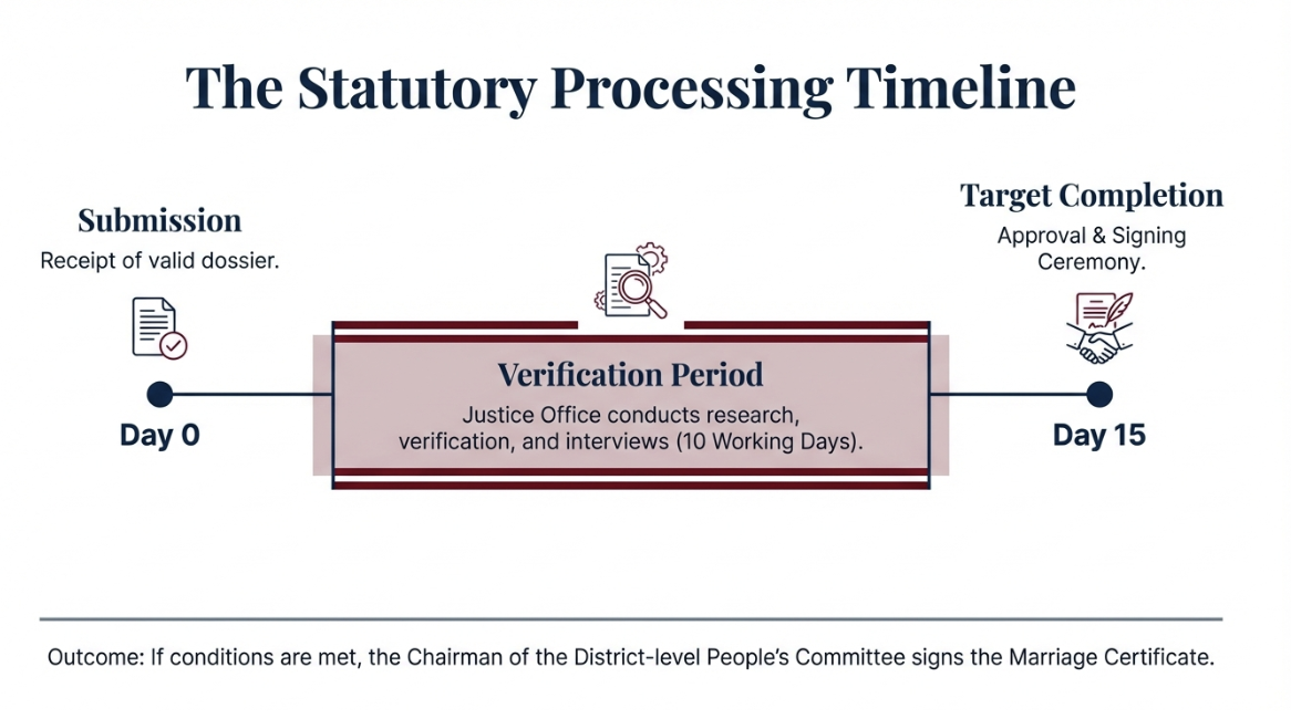 The timeline for processing a marriage registration involving foreign elements is strictly regulated by law: