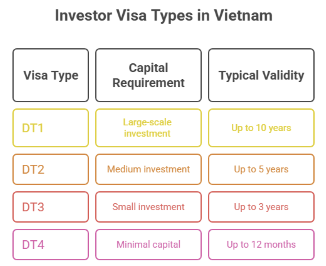 Vietnamese law classifies investor visas based on capital contribution: