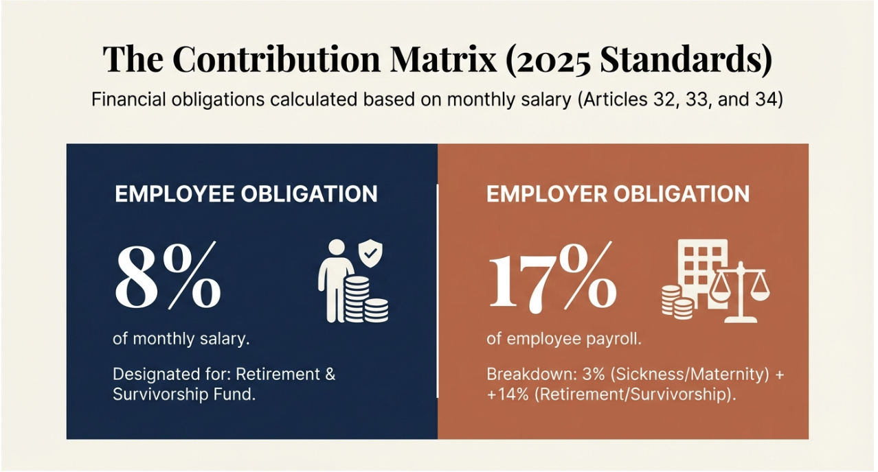 Contribution rates are calculated based on the employee’s monthly salary. In accordance with Articles 32, 33, and 34 of the Law on Social Insurance 2024, the financial obligations are allocated as follows: