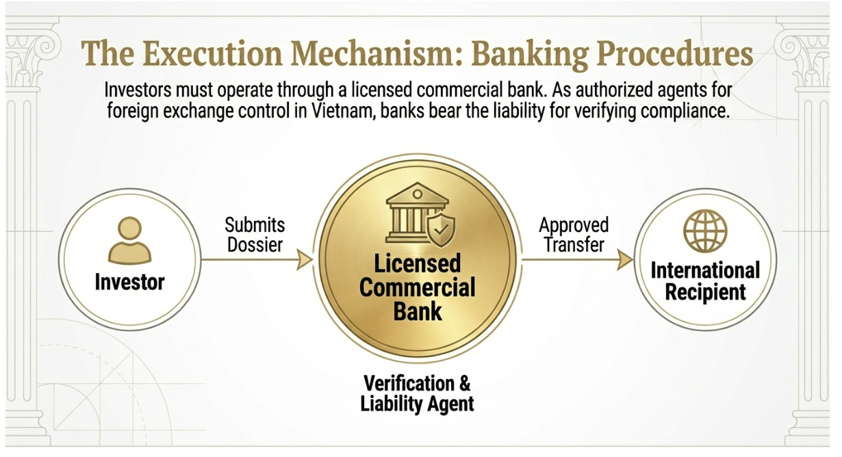 To execute a repatriation transaction, investors must operate through a licensed commercial bank. As authorized agents for foreign exchange control Vietnam, banks bear the liability for verifying compliance. Consequently, they mandate a rigorous dossier to substantiate the “fulfillment of financial obligations.”