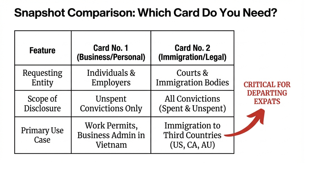 However, the Vietnamese legal system bifurcates these records into two distinct classifications: Card No. 1 and Card No. 2. Selecting the incorrect classification can result in the immediate rejection of your application by foreign authorities. This guide elucidates the statutory distinctions and the procedural framework for obtaining your criminal record for foreigners in Vietnam, even post-departure.