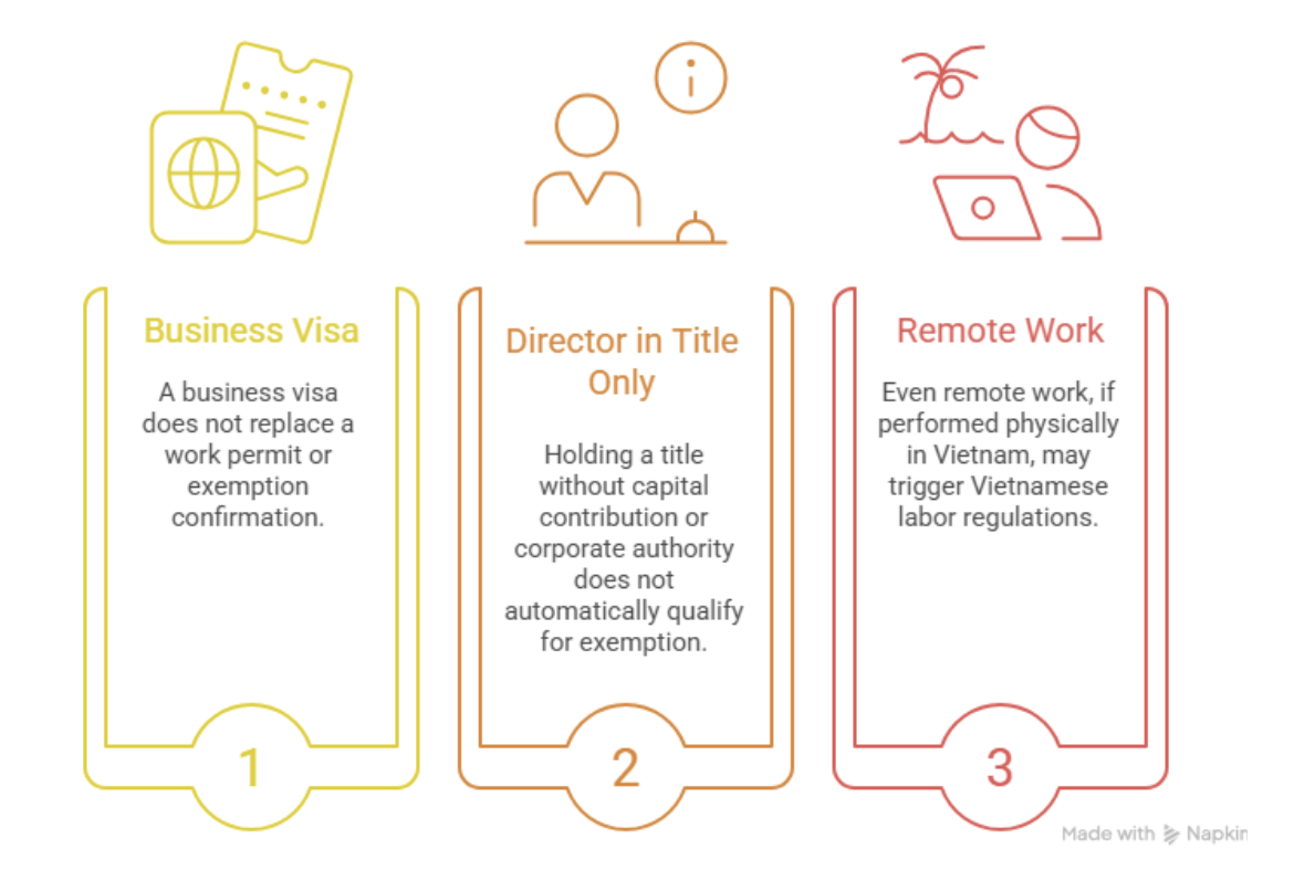In most exemption cases, foreigners must still apply for a confirmation of work permit exemption issued by Vietnamese authorities.